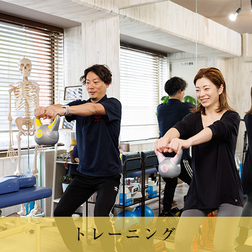 治療とトレーニングを組み合わせることで、治療による痛みの軽減や、整った身体の状態を長く保つことができます。トレーニングで痛みの再発防止に繋がります。